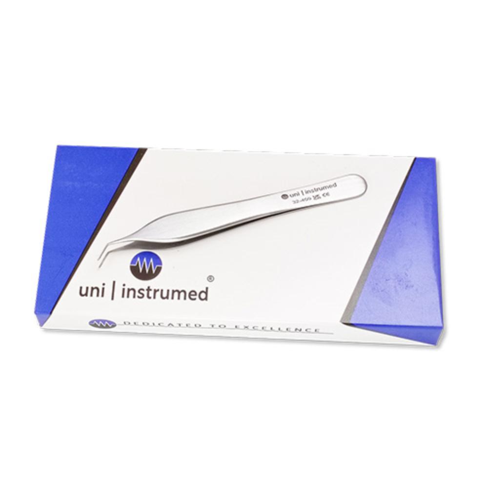 Die FUE- Extraktionspinzetten mit mikro- gezahnter Spitze wurde speziell für die sichere und präzise Entnahme von follikulären Einheiten nach dem Schnitt mit einem Punch- Stanze entwickelt. Die feine, längliche und mikro- gezahnte Spitze gewährleistet einen optimalen Halt – selbst bei tief sitzenden,  gekrümmten oder in