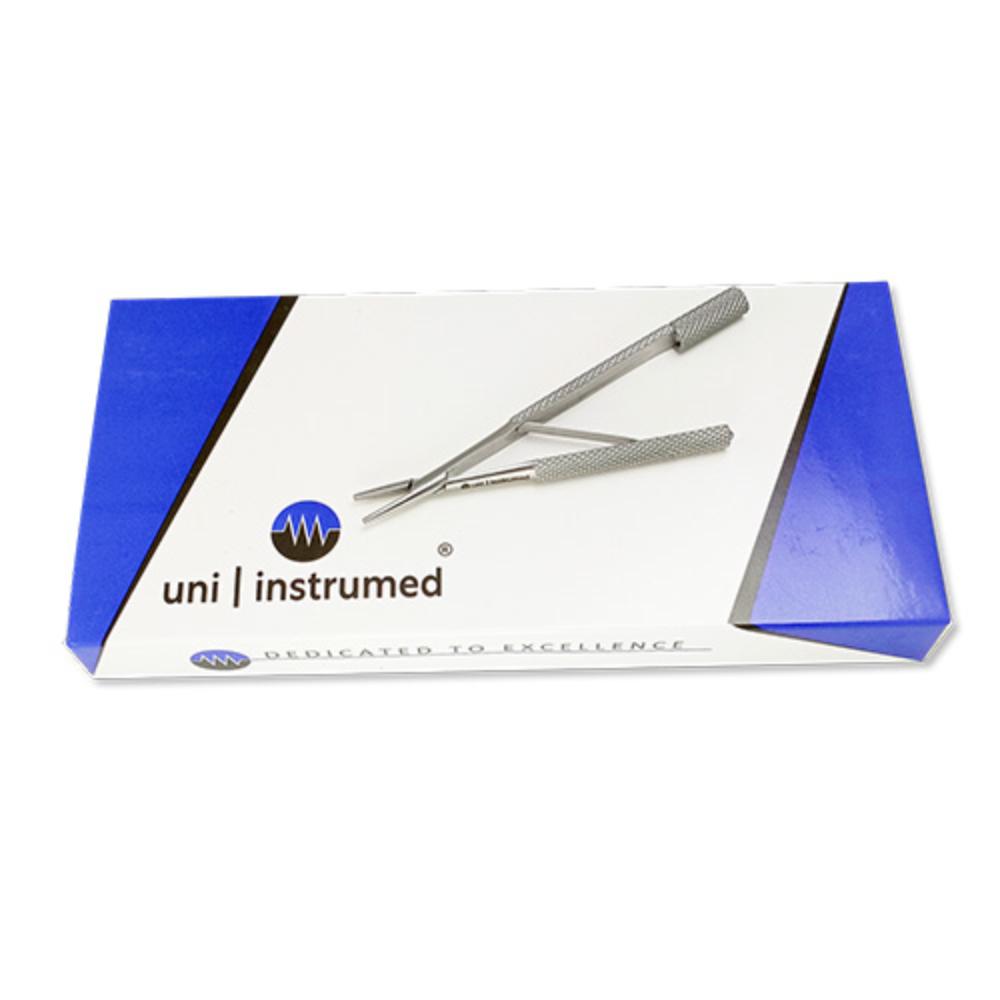 Kompaktes Instrument zum Halten, Handhaben und Brechen chirurgischer Klingen, wie sie bei Haartransplantationen oder dermatologischer Mikrochirurgie verwendet werden.