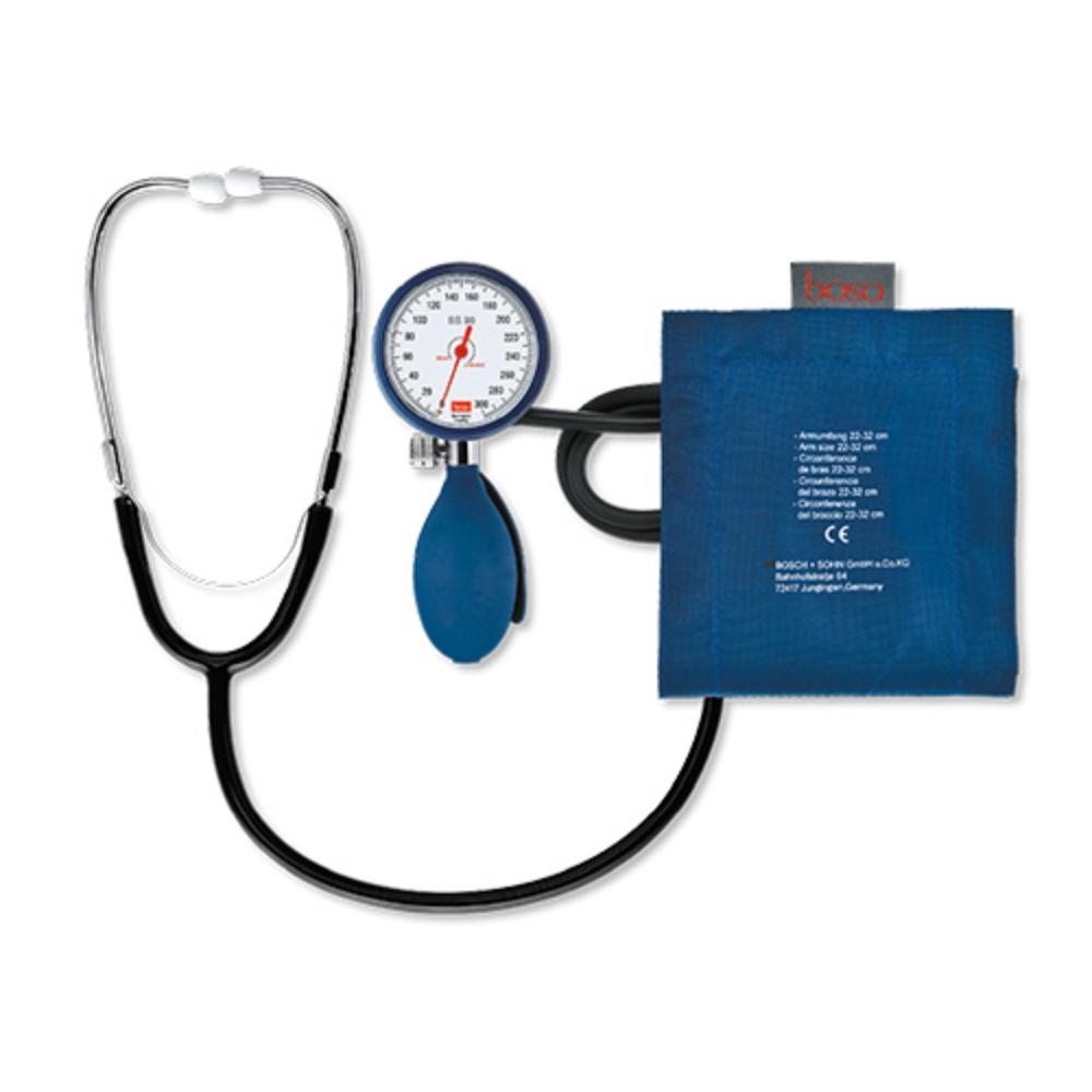 Boso BS 90, Ø 60 mm blau, Blutdruckmessgerät mit Stethoskop, Klettmanschette für starke Oberarme